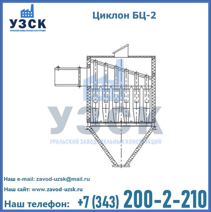 Уральский Завод Стальных Конструкций производит продукцию, в том числе, батарейные циклоны БЦ-2, изготовленную в соответствие со всем стандартами и требованиями. Качество и безопасность поставляемого нами оборудования подтверждены необходимыми сертификатами отечественного и европейского образца. Процесс изготовления контролируется на всех этапах, мы ответственно подходим к выбору материала и качеству монтажа. К каждому заказу существует индивидуальный подход, возможны различные варианты комплектации. УЗСК также занимается реализацией и производственным выпуском циклонов и прочих изделий под заказ. Цена на нашу продукцию формируется исходя из индивидуальных требований заказчика и специфики производства. Уральский Завод Стальных Конструкций гарантирует качество, износостойкость и высокую производительность предлагаемого оборудования. Сделать заказ в Камышине очень просто, требуется только оформить заявку на нашем сайте или позвонить по указанному в разделе «КОНТАКТЫ» телефону.
