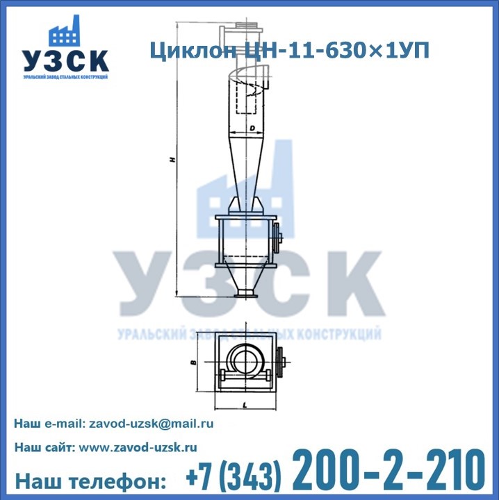 Уральский Завод Стальных Конструкций в Камышине производит и продает надежное, эффективное и производительное оборудование, имеющее длительную гарантию и большой эксплуатационный ресурс. УЗСК также предлагает циклоны из нержавеющей стали высокого качества. По желанию заказчика толщина стали для циклона и бункера может быть увеличена. Заказать и купить циклоны ЦН-11 высокого качества и по доступной цене можно через наш сайт или по указанному в разделе «Контакты» телефону.