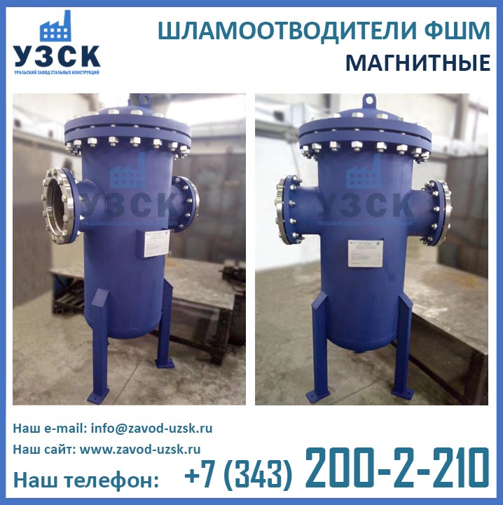 Являясь непосредственным изготовителем фильтров магнитных ФШМ, Уральский завод стальных конструкций предлагает самые низкие цены на шламоотделители ФШМ Ду250 в Камышине. Производство магнитных шламоотводителей осуществляется в самые короткие сроки специалистами сварочного производства НАКС по аттестованной технологии сварки при помощи сварочного оборудования, аттестованного Национальным агентством контроля сварки.